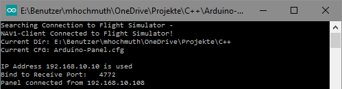 Über den Netzwerkadapter wird mit einer Anfrage auf der Broadcast-Adresse des Netzwerksegmentes und dem der jeweiligen Panel-Funktion zugeordneten UDP-Port (dieser muss mit dem Sketch übereinstimmen) der ADF-Controller gesucht. Der ADF-Controller empfängt diese Anfrage und kennt dadurch die IP-Adresse der sendenden Kommunikations-Software. An diese IP-Adresse wird dann die Bestätigung gesendet, wodurch der Kommunikations-Software die Controller-IP-Adresse übermittelt wird. Damit ist die Verbindung aufgebaut. Der Controller kennt jetzt die IP-Adresse des Flugsimulators und der Flugsimulator die IP-Adresse des Controllers.