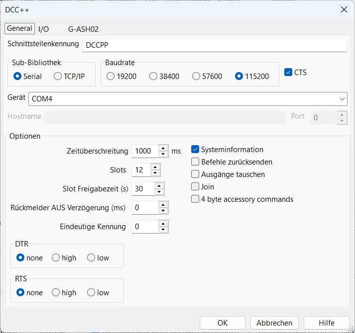 Für DCCPP/DCC-Ex werden folgende Einstellungen vorgenommen: