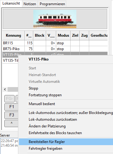 Über das Lok-Menü kann der Lok jetzt ein FREDI-Fahrregler zugewiesen werden: