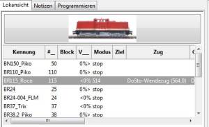 Mit den Tasten am FREDI (analog: Shift+Nothalt, incremental: Shift+Pushbutton) wird die Lok übernommen.
