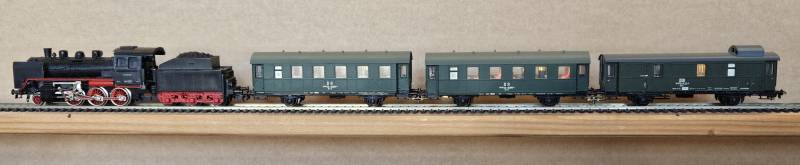 Die umgebaute Piko BR24 mit den zwei Bi-33 und einem Pwi-32 vom gleichen Hersteller.