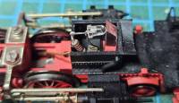 Für die Ausführung musste das Gewicht des Tenders etwas bearbeitet werden. Um eventuelle Berührungen des Federdrahtes mit dem Gewicht zu verhindern, habe ich die Stellen lackiert. Auch die LEDs wurden mit Isolierband abgedeckt, um eventuelle Berührung mit dem Gewicht zu verhindern.