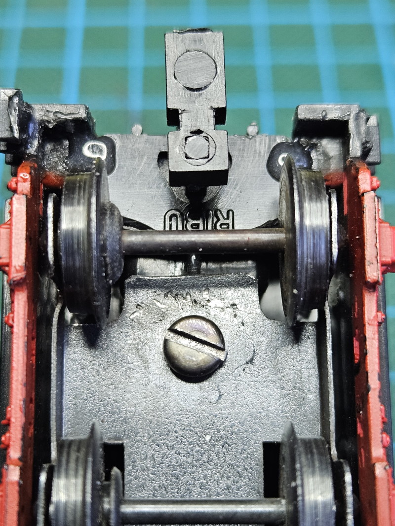 Für das einfachere Auseinandernehmen wurde in den Tender eine RIBU-KKK eingeklebt und an der Lok ein Deichselteil mit dem Gegenstück versehen.
