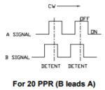 Für den Drehimpulsgeber wird ein Typ verwendet, der eine komplette Impulsfolge pro Rastung erzeugt. Je nach Anwendungsfall können unterschiedlich große Drehimpulsgeber verwendet werden. Bei ersten Tests habe ich einen REB162PVBS verwendet.