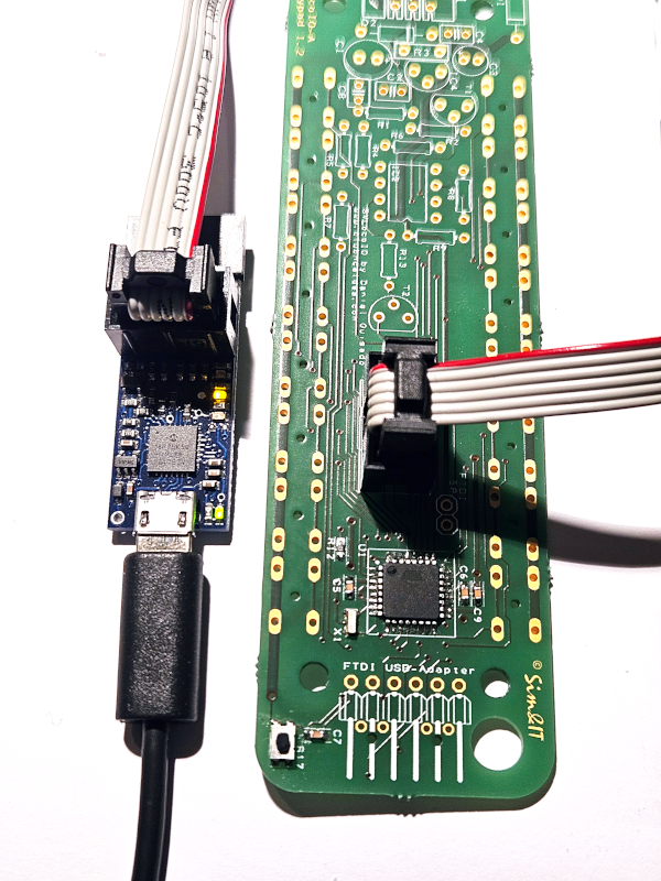 Wenn der Bootloader vorhanden ist, kann der Controller über den sechspoligen Anschluss (FTDI-kompatibel) und einem USB-Seriell-Adapter mit der Arduino-IDE programmiert werden.
