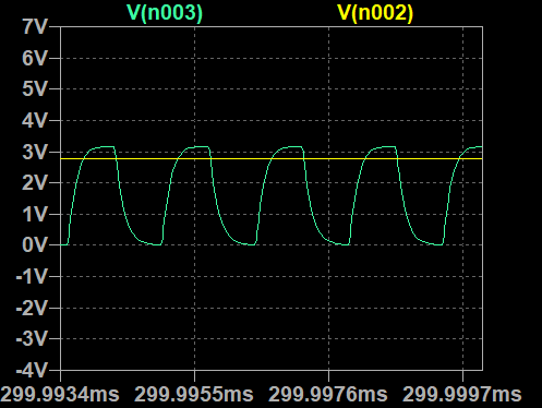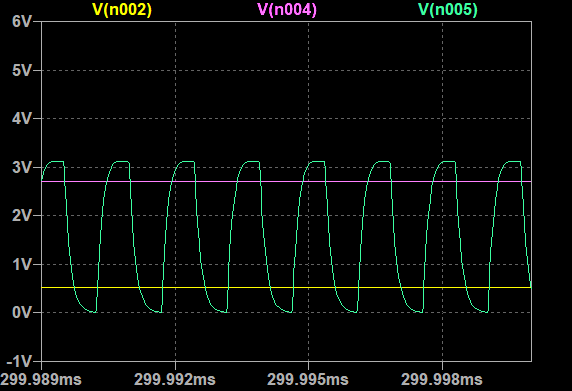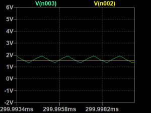 Anschließend habe ich die Schaltung mit LTSpice simuliert. Die Kapazität wurde mit 10pF für Luft und 200pF im Wasser simuliert.