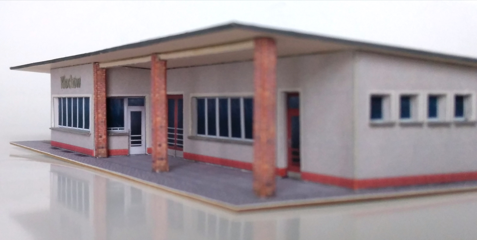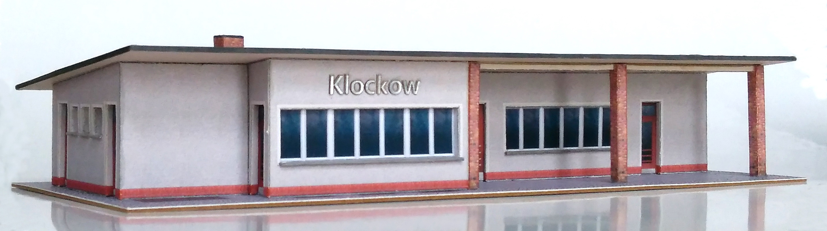 An der Bahnstrecke Neustrelitz-Warnemünde (Lloydbahn) wurden Anfang der 60er Jahre viele Zweck-Bauten als Stationsgebäude errichtet. Eines dieser Gebäude war der Bahnhof Klockow, der 2011 abgerissen wurde. Diesen habe ich nach Fotos und noch bestehenden ähnlichen Gebäuden im Maßstab 1:160 nachgebaut.