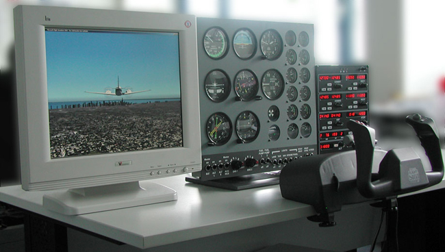 Das SystemDie Panel-Systeme TFT1PROP und TFT2PROP von ITRA mit hoch detailierten Anzeigen sind Geräte auf der Basis eines TFT-Monitors zur Instrumentierung Ihrer Simulator-Panels. Voll ausgebaut können Sie gänzlich auf Maus, Tastatur und Panelfenster in Ihrer Simulation verzichten. Dann können Sie sich voll und ganz auf die Bedienung realer Instrumente konzentrieren und auf den Bildschirmen die Außenansichten der Simulation beobachten. Die Bediencontroller werden über USB an den Flugsimulator-PC angeschlossen. Das Monitorsystem kann an einer Dualhead-Grafikkarte angeschlossen werden oder auf einem weiteren PC, der über Netzwerk mit dem Flugsimulator-PC verbunden ist, installiert werden.Alle Anzeigen folgen unmittelbar den Einstellungen durch den Bediener oder durch Flugsimulator-Adventures. Alle Bedienelemente bestimmen mit ihrer Einstellung den Status im Flugsimulator. Unterstützte Flugsimulatoren: