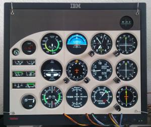 Die Abbildung zeigt den kompletten Aufbau des Controllers mit der Port-Erweiterung und dem Ethernet-Modul. Mit dieser Erweiterung ist es möglich, Schalter des Panels eines Kleinflugzeuges nachzubilden. Dazu zählen u.a. Starter, Lichtschalter, Fuelpump, Tank, Flaps, Gear.