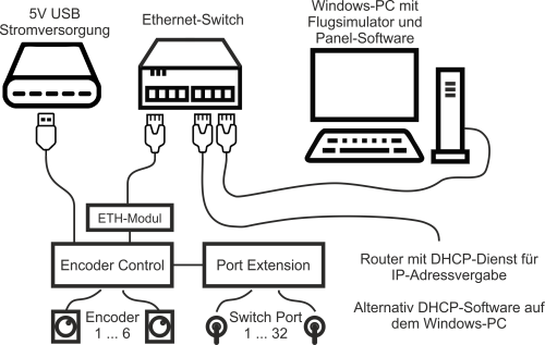 Prinzip-Darstellung eines Netzwerkes mit dem Encoder Controller