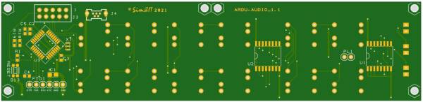 Das Audio-Panel ist von der Anordnung der Tasten in grober Anlehnung an das KMA-30 gestaltet. Das Panel wird über Ethernet mit dem FS-PC verbunden. Der Arduino-Sketch verarbeitet die Taster-Ereignisse, die über UDP (Ethernet) zu einer Schnittstellensoftware auf dem PC übertragen werden, der hieraus FS-Kommandos generiert. Die aktualisierten Variablen werden an das Audio-Panel übertragen und mit LED-Anzeigen dargestellt. Als Kommunikationssoftware kommen SimConnect-Clients für MSFS (FSX, FS2020) und P3D sowie X-Plane-Plugins für X-Plane zum Einsatz.