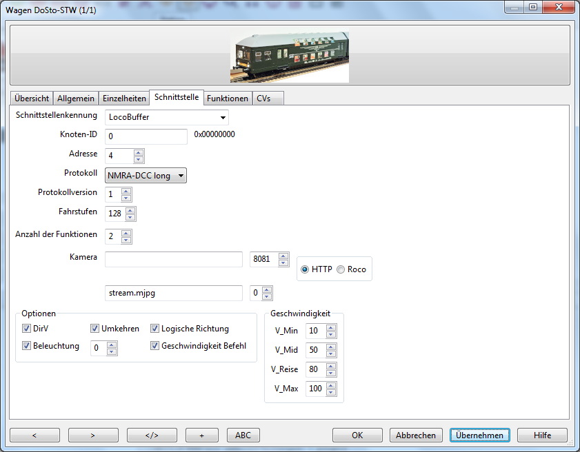Zusätzlich zur Lok wird einen Zug definiert, in dem der Steuerwagen drin ist. Der Lok wird diesen Zug zugewiesen. Befehle für Licht gehen dann zur Lok- und Steuerwagen-Adresse.