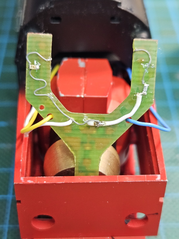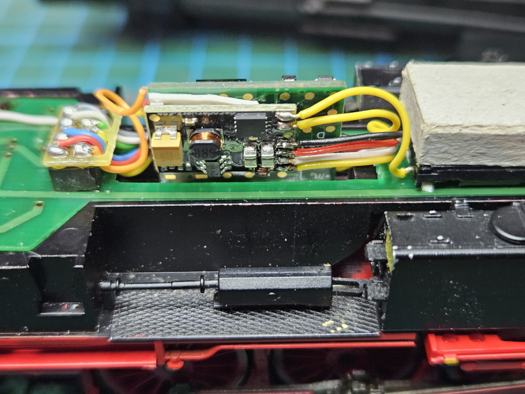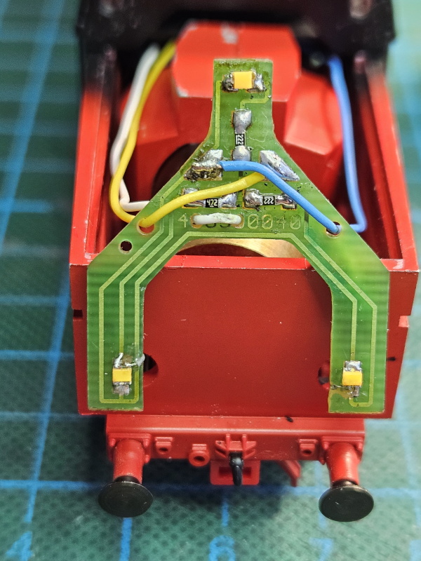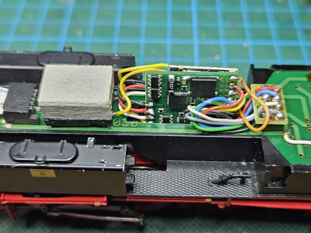 Die Lok wurde mit einem Lokdekoder ausgerüstet und die LEDs am Tender wurden auf Dual-LEDs weiß-rot umrerüstet. Die vorhandene Elektronik für die bisherige analoge Beleuchtung wurde entfernt, es werden nur Vorwiderstände für die LEDs verwendet.