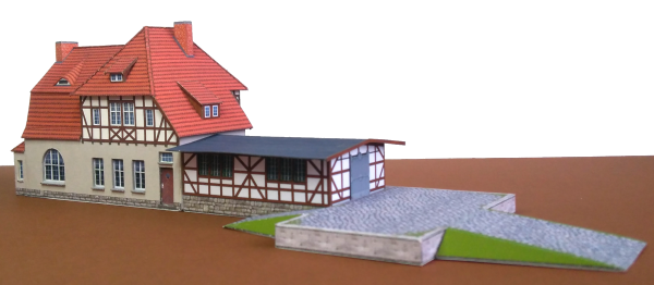 Der Bahnhof Lederhose wurde von Günter Fromm in einem Beitrag des Modelleisenbahners 2/74 und in weiteren Veröffentlichungen in Seitenansichten und Grundriss vorgestellt. Daraus wurde von mir ein Karton-Modell im Maßstab 1:160 erstellt.